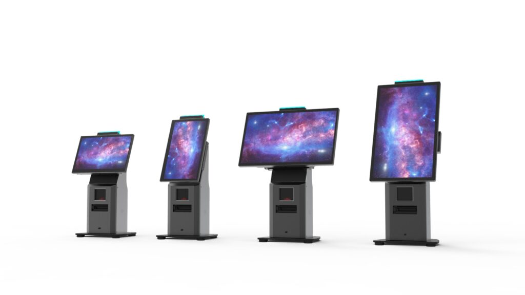 Der vertikal montierte Touchscreen hat eine 22″ Diagonalen und Full-HD (1080 x 1920 px) Auflösung. Der Touchscreen ist wie bei Smartphones kapazitativ, d.h. er reagiert auf die Leitung von Strom über die Haut, und ist dadurch schnell und angenehm zu bedienen. Weiter sind ein Scanner und ein Thermobelegdrucker integriert. Auf Augenhöhe neben dem Bildschirm befindet sich die Halterung für ein EFT-Gerät.